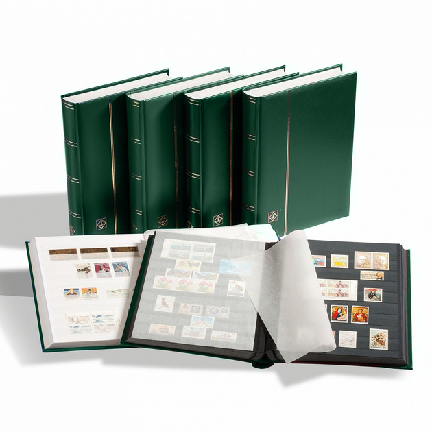 Альбом Leuchtturm для марок (кляссер) COMFORT з 32 листами з чорного картону, А4, ватована обкладинка, зелений
